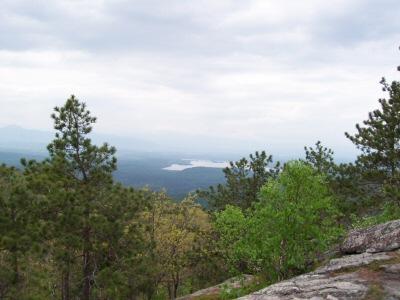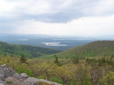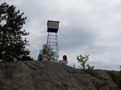 At the peak there is a firewarden's tower (still standing, as of 2006, but all boarded up). There are also nice views of ponds and mountains across about a 180 degree span.