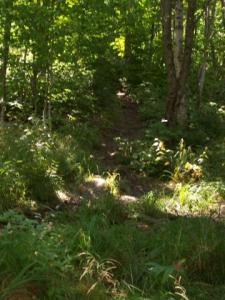 Once you've found the bridge, head south on Route 16 for about one mile. On the right you'll see a gravel road heading up a slope. We parked by the side of this road, and continued on by foot just a few yards down Route 16, until we found the trail, which was marked by a broken road sign which read "Mt Trail". (I suspect it was supposed to say "Aziscohos Mt Trail", but as I said, the sign was broken)