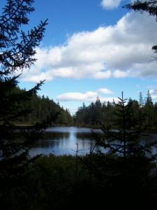 Returning to the Appalachian Trail, you'll continue on, and go by a series of three little ponds. Very nice, pretty, but mostly obscured by trees. Along the way, the trail gets muddier, and the bridges less reliable. At one point, you might see a stack of branches and small logs across the trail (again, as of 2008). These are intended to convey the message: "Even though the trail goes straight ahead, and you can see bridges over the mud, don't go this way."