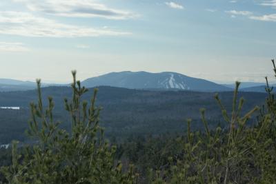 There aren't a lot of views from the top; you have one opening in the trees on some rock ledges where you can look out to Pleasant Mountain.