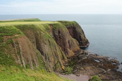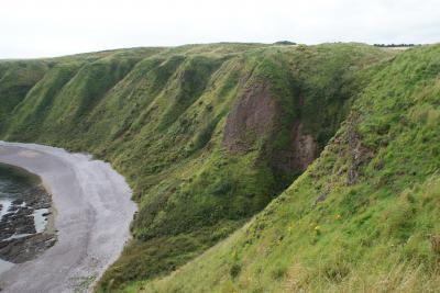 Once you get to Dunnottar's peninsula, there is a bit of a drop down into a col and a climb up the other side.