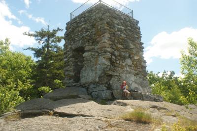 There isn't much for views at the summit, but fortunately the stone tower gets you above the trees so you can see. From Douglas Mountain you can see Pleasant Mountain to the west, Sebago Lake to the East, and many other mountains, including Kearsarge North (Intervale, NH) and Streaked Mountain (South Paris, ME).