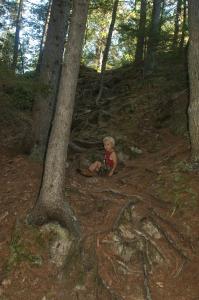 The trail is well maintained; there were many places along the way that trees had fallen across the trail, and had been sawed up and removed from the trail. In the steeper sections, the trail has eroded until the tree roots are sticking up. The roots aren't a problem though; in many cases they function almost like stairs over the steep parts.